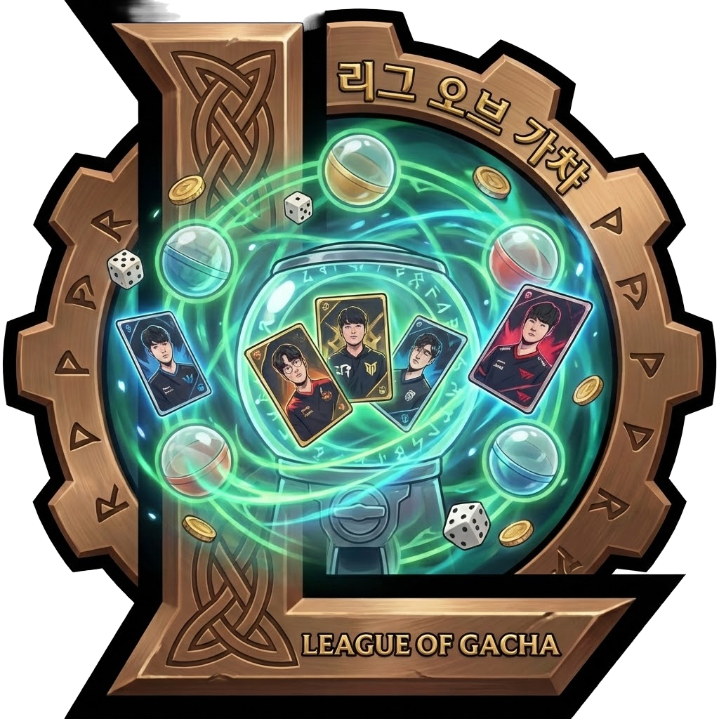 리그 오브 가챠는 리그오브레전드 프로게이머들을 랜덤으로 뽑아 나만의 드림팀을 만들 수 있는 무료 롤 가챠 게임입니다. 2013년부터 2025년까지 LCK, LPL, 월즈 챔피언 200명 이상의 선수 데이터를 포함하고 있으며, 페이커, 데프트, 루키 등 레전드 선수들을 뽑을 수 있습니다.